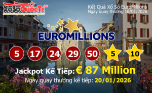 Kết quả xổ số EuroMillions của Châu Âu ngày quay thưởng 09/01/2026 (Tính theo...