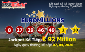 Kết quả xổ số EuroMillions của Châu Âu ngày quay thưởng 03/04/2026 (Tính theo...