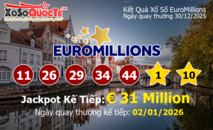 Kết quả xổ số EuroMillions của Châu Âu ngày quay thưởng 30/12/2025 (Tính theo...