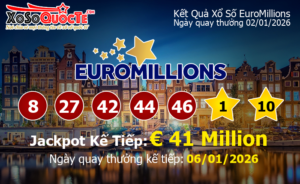 Kết quả xổ số EuroMillions của Châu Âu ngày quay thưởng 02/01/2026 (Tính theo...