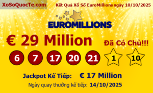 Kết quả xổ số EuroMillions của Châu Âu ngày quay thưởng 07/10/2025 (Tính theo...